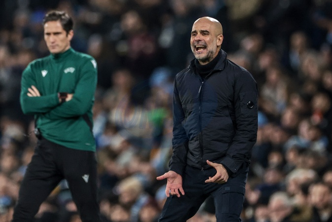 Pep Guardiola manager of Manchester City reacts during the UEFA Champions League Matchday 8 of 8 match Manchester City vs Galatasaray at City of Manchester Stadium, Manchester, United Kingdom on 28 January 2026, Credit:Mark Cosgrove/News Images / Avalon