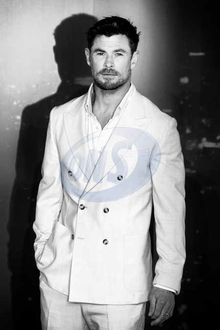 Chris Hemsworth seen at the UK Gala screening of Crime 101 on Wednesday 28 January 2026 at ODEON LUXE Leicester Square, London. Editors Note: Image converted to monochrome., Credit:Julie Edwards / Avalon