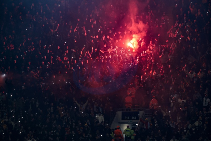 Galatasaray fans throw flairs into the Manchester City stand during the UEFA Champions League Matchday 8 of 8 match Manchester City vs Galatasaray at City of Manchester Stadium, Manchester, United Kingdom on 28 January 2026, Credit:Mark Cosgrove/News Images / Avalon