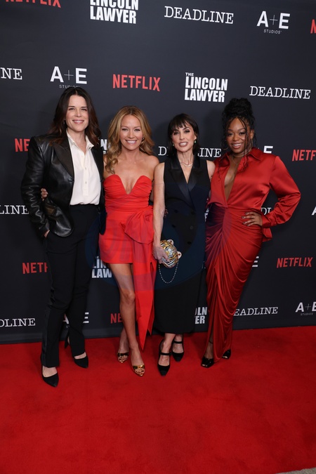 Neve Campbell, Becki Newton, Constance Zimmer and Jazz Raycole at the Los Angeles Premiere Of Netflix's and A+E Studios' 'The Lincoln Lawyer' Season 4 held at the Penske Media Corporation (PMC) Rooftop Terrace on January 28, 2026 in Los Angeles, California, United States., Credit:Xavier Collin / Avalon