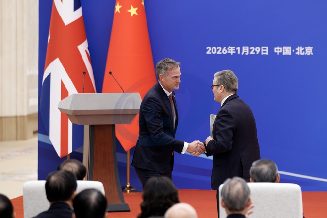 29/01/2026. Beijing, China. Secretary of State for Business and Trade Peter Kyle speaks at a business event as Prime Minister Keir Starmer meets China's Premier Li Qiang at the Great Hall of the People., Credit:Lauren Hurley / Avalon
