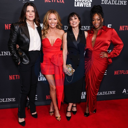 LOS ANGELES, CALIFORNIA, USA - JANUARY 28: Neve Campbell, Becki Newton, Constance Zimmer and Jazz Raycole arrive at the Los Angeles Premiere Of Netflix's and A+E Studios' 'The Lincoln Lawyer' Season 4 held at the Penske Media Corporation (PMC) Rooftop Terrace on January 28, 2026 in Los Angeles, California, United States., Credit:Xavier Collin / Avalon
