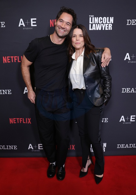 28 January 2026 . Los Angeles, California Manuel Garcia-Rulfo and Neve Campbell At the Premiere Celebration Of "The Lincoln Lawyer" Season 4 hheld at PMC Rooftop Terrace in Los Angeles., Credit:Sadou Faye / Avalon