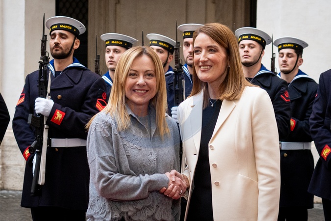 Italian Prime Minister Giorgia Meloni receives the President of the European Parliament, Roberta Metsola at Palazzo Chigi in Rome, Italy on 29 January 2026.