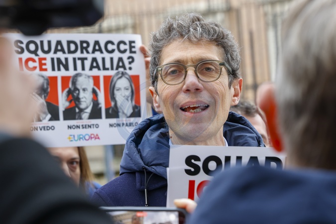 29/01/2026 Rome, Sit-in protest against the presence of the American ICE police at the Milan Cortina 2026 Olympics, in the photo Riccardo Magi, Credit:Cristiano Minichiello / Avalon