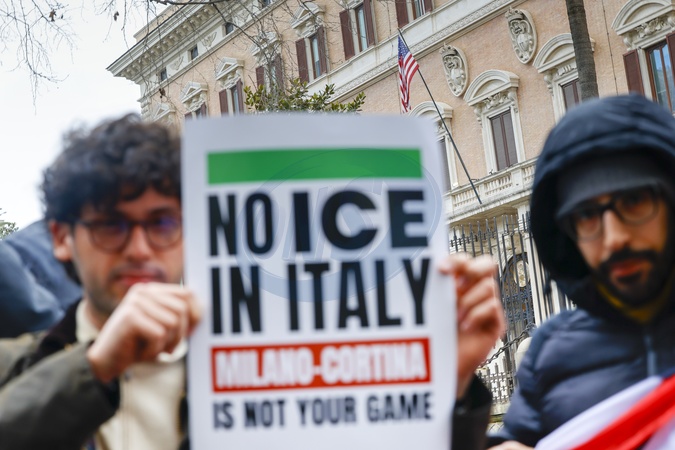 January 29, 2026, Rome, Sit-in protest against the presence of the American ICE police at the 2026 Milan Cortina Olympics, Credit:Cristiano Minichiello / Avalon