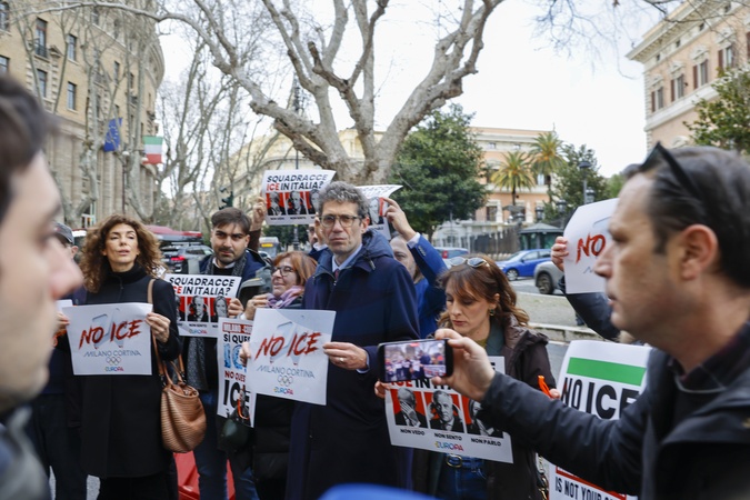 29/01/2026 Rome, Sit-in protest against the presence of the American ICE police at the Milan Cortina 2026 Olympics, in the photo Riccardo Magi, Credit:Cristiano Minichiello / Avalon