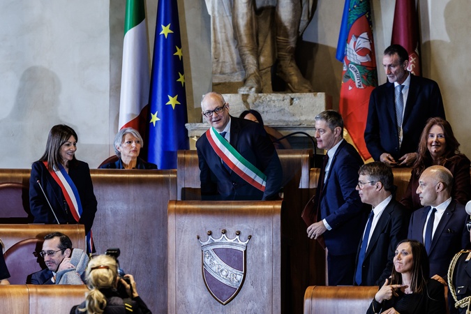 29/01/2026 Rome, Delivery of the Capitoline Wolf to the Mayor of Paris on the occasion of the 70th anniversary of the twinning between Rome and Paris. In the photo: Mayor of Rome Roberto Gualtieri and Mayor of Paris Anne Hidalgo., Credit:Francesco Fotia / Avalon