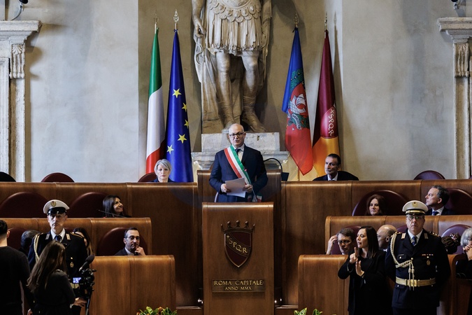 29/01/2026 Rome, Delivery of the Capitoline Wolf to the Mayor of Paris on the occasion of the 70th anniversary of the twinning between Rome and Paris. In the photo: Mayor of Rome Roberto Gualtieri and Mayor of Paris Anne Hidalgo., Credit:Francesco Fotia / Avalon