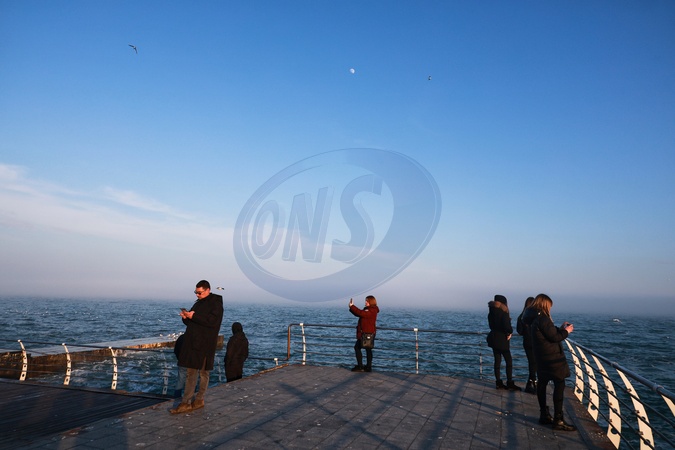 People stay on the embankment by the Black Sea on a warm winter day after a spell of cold weather, Odesa, Ukraine, January 29, 2026., Credit:Nina Liashonok / Avalon