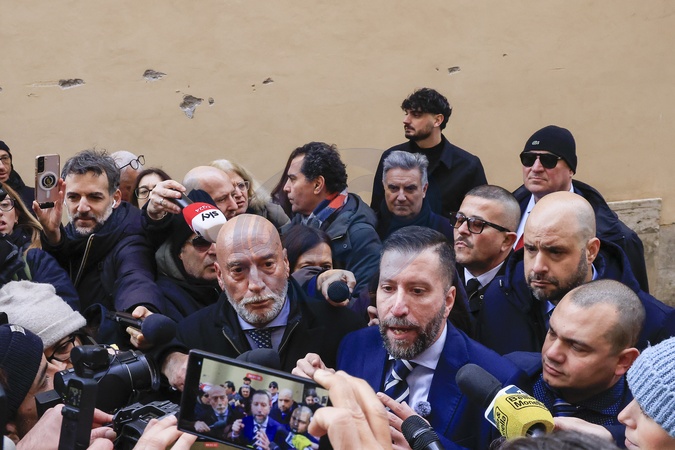 January 30, 2026, Rome. The promoters of the Remigration and Reconquest Committee speak to journalists after the press conference at the Chamber of Deputies was canceled for security reasons. Pictured, from left, are Salvatore Ferrara, Luca Marsella, Simone Montagna, and Ivan Sogari., Credit:Richard De Luca / Avalon