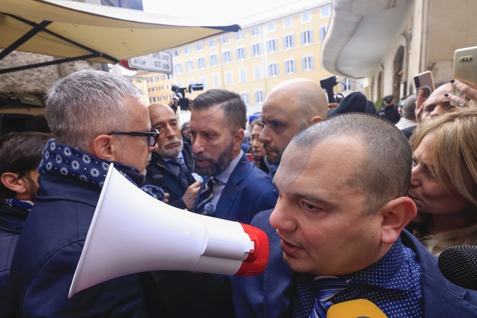 January 30, 2026, Rome. The promoters of the Remigration and Reconquest Committee speak to journalists after the press conference at the Chamber of Deputies was canceled for security reasons. Pictured from left: Luca Marsella, Simone Montagna, and Ivan Sogari., Credit:Richard De Luca / Avalon