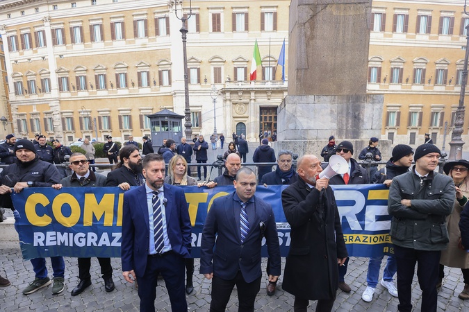 Protest at the Chamber of Deputies during the press conference of the Committee on Remigration and Reconquest