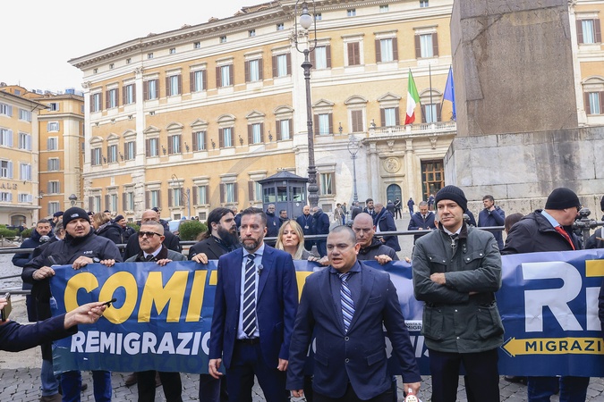 Protest at the Chamber of Deputies during the press conference of the Committee on Remigration and Reconquest