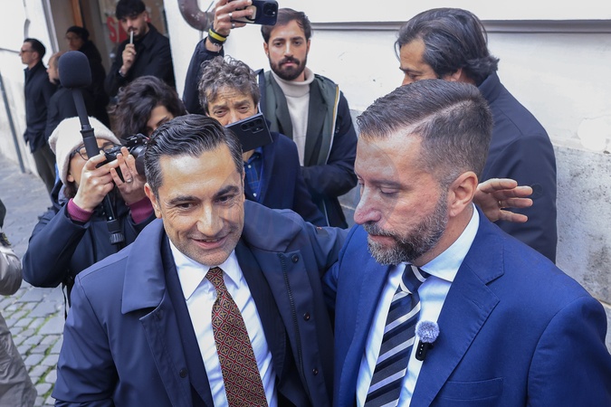 January 30, 2026, Rome. The promoters of the Remigration and Reconquest Committee speak to journalists after the press conference at the Chamber of Deputies was canceled for security reasons. Pictured are Domenico Furgiuele and Luca Marsella., Credit:Richard De Luca / Avalon