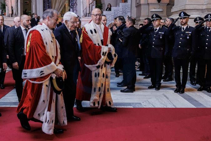 30/01/2026 Rome, General Assembly of the Court of Cassation and Inauguration Ceremony of the Judicial Year. Pictured are the Attorney General of the Court of Cassation Pietro Gaeta, the President of the Republic Sergio Mattarella, and the First President of the Court of Cassation Pasquale D'Ascola., Credit:Francesco Fotia / Avalon