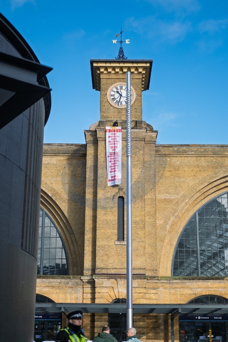 Political rooftop demonstration on Kings Cross train station, Central London, brings localised chaos to commuters..United Kingdom. 30 January 2026, Credit:Mark Fairhurst / Avalon