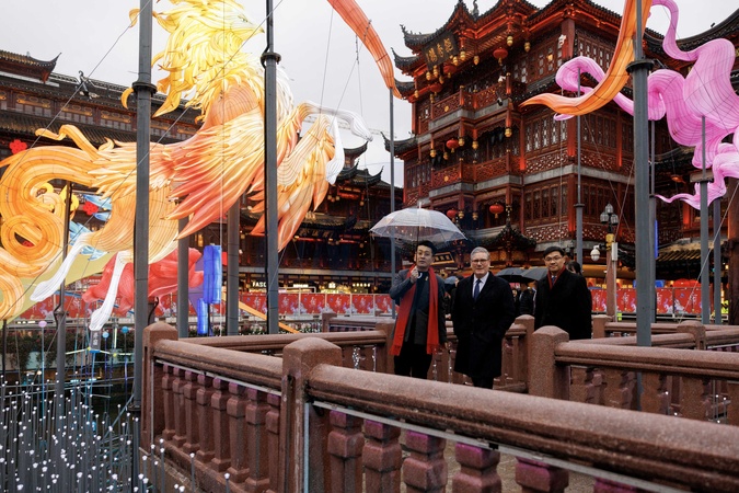 30/01/2026. Shanghai, China. Prime Minister Keir Starmer visits Yuyuan Garden where he joined students inside the Huxinting Tea House and helped finish handcrafted UK themed lanterns., Credit:Lauren Hurley / Avalon