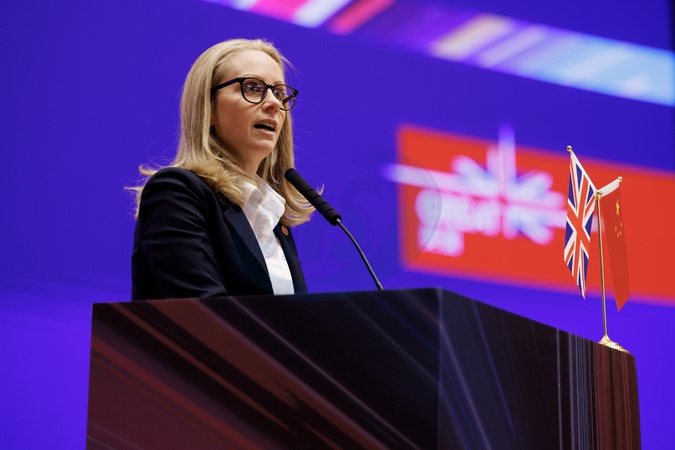 30/01/2026. Beijing, China. Economic Secretary to the Treasury Lucy Rigby speaks at a UK-China Business Forum at the Bank of China., Credit:Lauren Hurley / Avalon