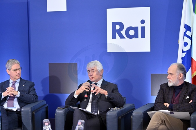 January 30, 2026, Rome. Rai. Press conference to present the XXV Olympic Winter Games Milan-Cortina. Pictured is Giampaolo Rossi, CEO of Rai, Andrea Abodi, Minister for Sport and Youth, and Paolo Petrecca, Director of RaiSport., Credit:Maria Laura Antonelli / Avalon