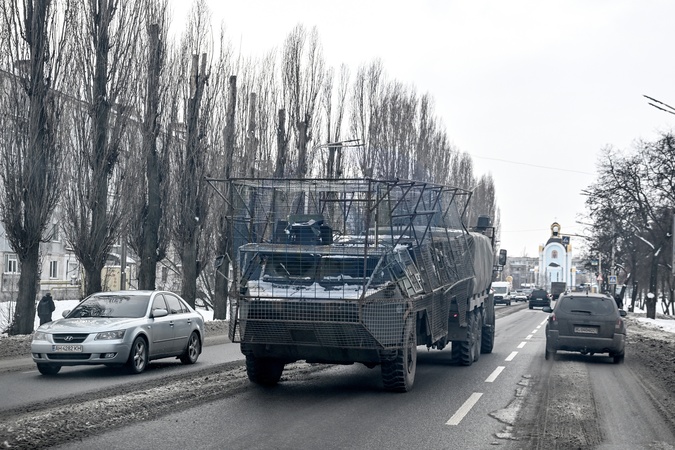 An armoured military car equipped with an electronic warfare complex and an anti-drone mesh drives along the road protected from Russian FPV drones with an anti-drone net, Donetsk region, Ukraine, January 23, 2026., Credit:Dmytro Smolienko / Avalon
