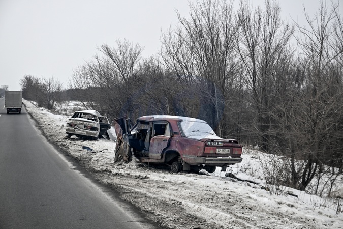 Damaged cars are discarded on the roadside, Donetsk region, Ukraine, January 23, 2026., Credit:Dmytro Smolienko / Avalon