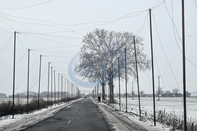 A man stands on the roadside under an anti-drone net that protects from Russian FPV drone strikes, Donetsk region, Ukraine, January 23, 2026., Credit:Dmytro Smolienko / Avalon