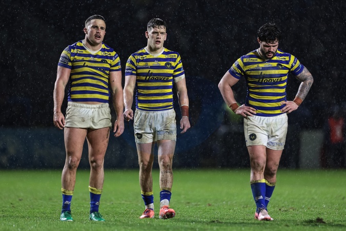 Josh Smith of Warrington Wolves, Josh Thewlis of Warrington Wolves and James Bentley of Warrington Wolves during the Pre Season match Warrington Wolves vs Leigh Leopards at Halliwell Jones Stadium, Warrington, United Kingdom, 30th January 2026, Credit:Mark Cosgrove/News Images / Avalon