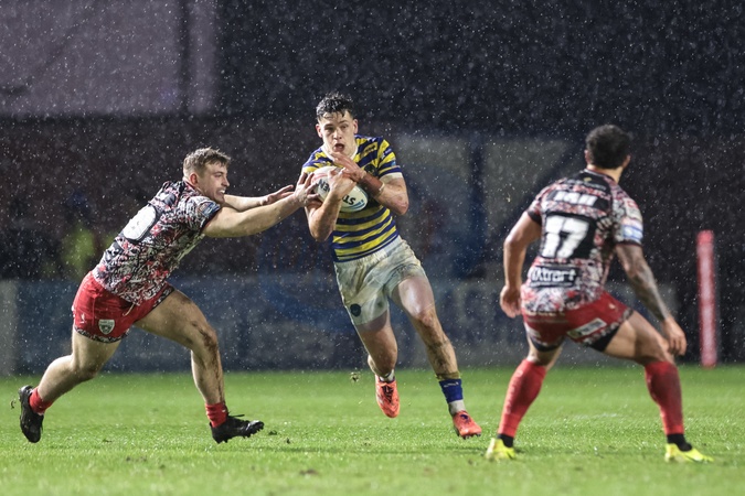 Josh Thewlis of Warrington Wolves in action during the Pre Season match Warrington Wolves vs Leigh Leopards at Halliwell Jones Stadium, Warrington, United Kingdom, 30th January 2026, Credit:Mark Cosgrove/News Images / Avalon