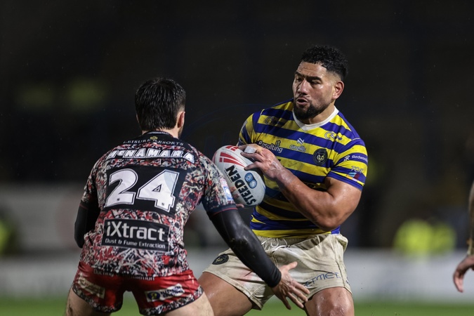 Kelepi Tanginoa of Warrington Wolves in action during the Pre Season match Warrington Wolves vs Leigh Leopards at Halliwell Jones Stadium, Warrington, United Kingdom, 30th January 2026, Credit:Mark Cosgrove/News Images / Avalon