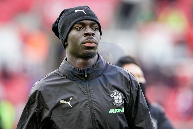 Joshua Quarshie of Southampton in the pregame warmup session during the Sky Bet Championship match Stoke City vs Southampton at Bet365 Stadium, Stoke-on-Trent, United Kingdom, 31st January 2026, Credit:Maynard Manyowa/News Images / Avalon