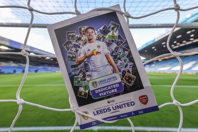Ethan Ampadu of Leeds United on the front cover of the official match day program during the Premier League match Leeds United vs Arsenal at Elland Road, Leeds, United Kingdom, 31st January 2026, Credit:Mark Cosgrove/News Images / Avalon