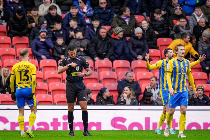 Finn Azaz of Southampton reacts to getting a yellow card from Referee Farai Hallam for simulation during the Sky Bet Championship match Stoke City vs Southampton at Bet365 Stadium, Stoke-on-Trent, United Kingdom, 31st January 2026, Credit:Maynard Manyowa/News Images / Avalon