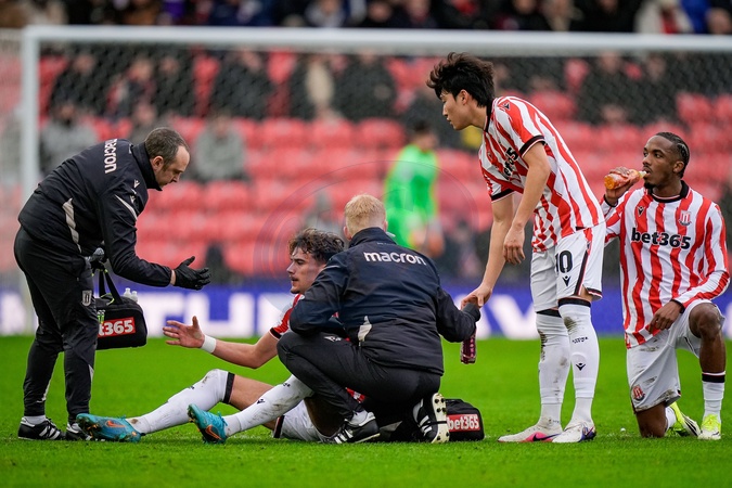 Milan Smit of Stoke City receives treatment during the Sky Bet Championship match Stoke City vs Southampton at Bet365 Stadium, Stoke-on-Trent, United Kingdom, 31st January 2026, Credit:Maynard Manyowa/News Images / Avalon