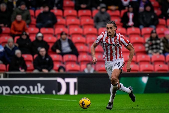Ashley Phillips of Stoke City makes a run with the ball during the Sky Bet Championship match Stoke City vs Southampton at Bet365 Stadium, Stoke-on-Trent, United Kingdom, 31st January 2026, Credit:Maynard Manyowa/News Images / Avalon