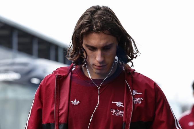 Riccardo Calafiori of Arsenal arrives during the Premier League match Leeds United vs Arsenal at Elland Road, Leeds, United Kingdom, 31st January 2026, Credit:Mark Cosgrove/News Images / Avalon