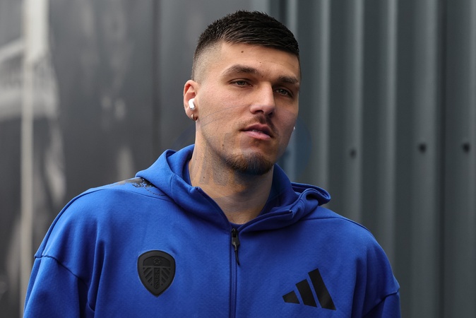 Joel Piroe of Leeds United arrives during the Premier League match Leeds United vs Arsenal at Elland Road, Leeds, United Kingdom, 31st January 2026, Credit:Mark Cosgrove/News Images / Avalon