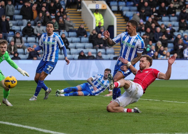Sam Smith of Wrexham scores to make it 0-1 during the Sky Bet Championship match Sheffield Wednesday vs Wrexham at Hillsborough, Sheffield, United Kingdom, 31st January 2026, Credit:Richard Bierton/News Images / Avalon