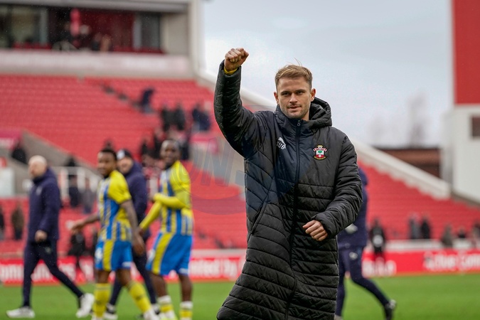 Leo Scienza of Southampton applauds the fans after the final whistle during the Sky Bet Championship match Stoke City vs Southampton at Bet365 Stadium, Stoke-on-Trent, United Kingdom, 31st January 2026, Credit:Maynard Manyowa/News Images / Avalon