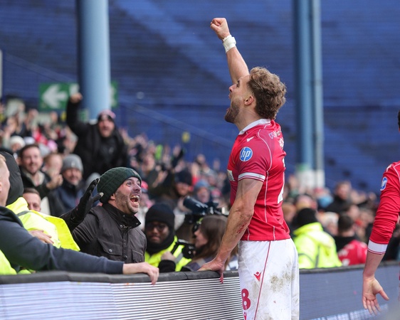 Sam Smith of Wrexham celebrates his goal to make it 0-1 during the Sky Bet Championship match Sheffield Wednesday vs Wrexham at Hillsborough, Sheffield, United Kingdom, 31st January 2026, Credit:Richard Bierton/News Images / Avalon