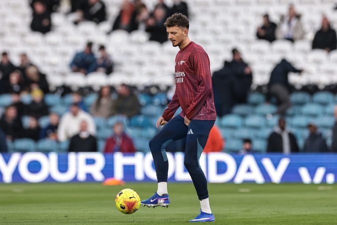Ben White of Arsenal in the pregame warmup session during the Premier League match Leeds United vs Arsenal at Elland Road, Leeds, United Kingdom, 31st January 2026, Credit:Mark Cosgrove/News Images / Avalon