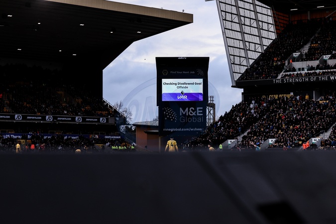 VAR check for an offside goal scored by Mateus Mane of Wolverhampton Wanderers during the Premier League match Wolverhampton Wanderers vs Bournemouth at Molineux, Wolverhampton, United Kingdom, 31st January 2026, Credit:Ae Cosgrove/News Images / Avalon