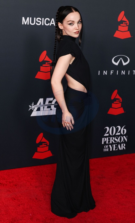 LOS ANGELES, CALIFORNIA, USA - JANUARY 30: Dove Cameron wearing a Zuhair Murad dress arrives at the MusiCares 2026 Person of the Year Honoring Mariah Carey held at the Los Angeles Convention Center South Hall on January 30, 2026 in Los Angeles, California, United States., Credit:Xavier Collin / Avalon