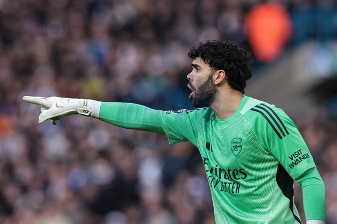 Arsenal goalkeeper David Raya gives his team instructions during the Premier League match Leeds United vs Arsenal at Elland Road, Leeds, United Kingdom, 31st January 2026, Credit:Mark Cosgrove/News Images / Avalon
