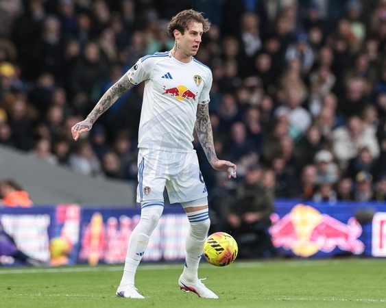 Joe Rodon of Leeds United with the ball during the Premier League match Leeds United vs Arsenal at Elland Road, Leeds, United Kingdom, 31st January 2026, Credit:Mark Cosgrove/News Images / Avalon