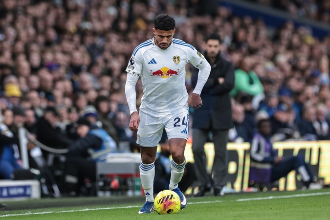 James Justin of Leeds United with the ball during the Premier League match Leeds United vs Arsenal at Elland Road, Leeds, United Kingdom, 31st January 2026, Credit:Mark Cosgrove/News Images / Avalon