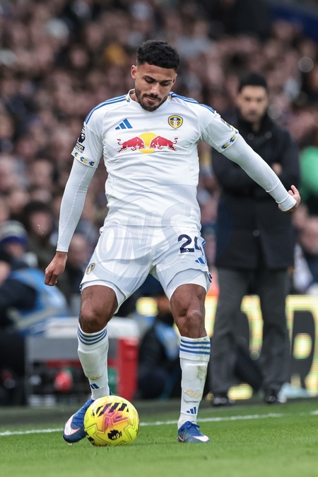 James Justin of Leeds United passes the ball during the Premier League match Leeds United vs Arsenal at Elland Road, Leeds, United Kingdom, 31st January 2026, Credit:Mark Cosgrove/News Images / Avalon