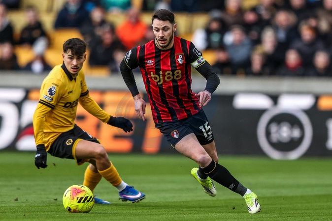 Adam Smith of Bournemouth breaks with the ball during the Premier League match Wolverhampton Wanderers vs Bournemouth at Molineux, Wolverhampton, United Kingdom, 31st January 2026, Credit:Ae Cosgrove/News Images / Avalon