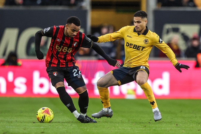 Eli Junior Kroupi of Bournemouth holds off Joao Gomes of Wolverhampton Wanderers during the Premier League match Wolverhampton Wanderers vs Bournemouth at Molineux, Wolverhampton, United Kingdom, 31st January 2026, Credit:Ae Cosgrove/News Images / Avalon