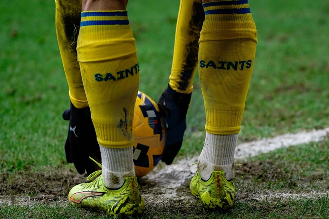 An image showing saints socks during the Sky Bet Championship match Stoke City vs Southampton at Bet365 Stadium, Stoke-on-Trent, United Kingdom, 31st January 2026, Credit:Maynard Manyowa/News Images / Avalon